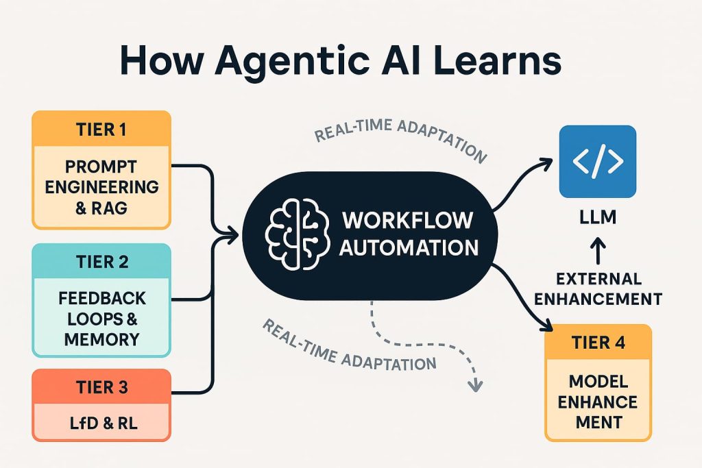 Continuous learning systems must be capable of adjusting decisions based on new evidence. Agentic AI agents constantly monitor outcomes, analyze deviations, and modify strategies.